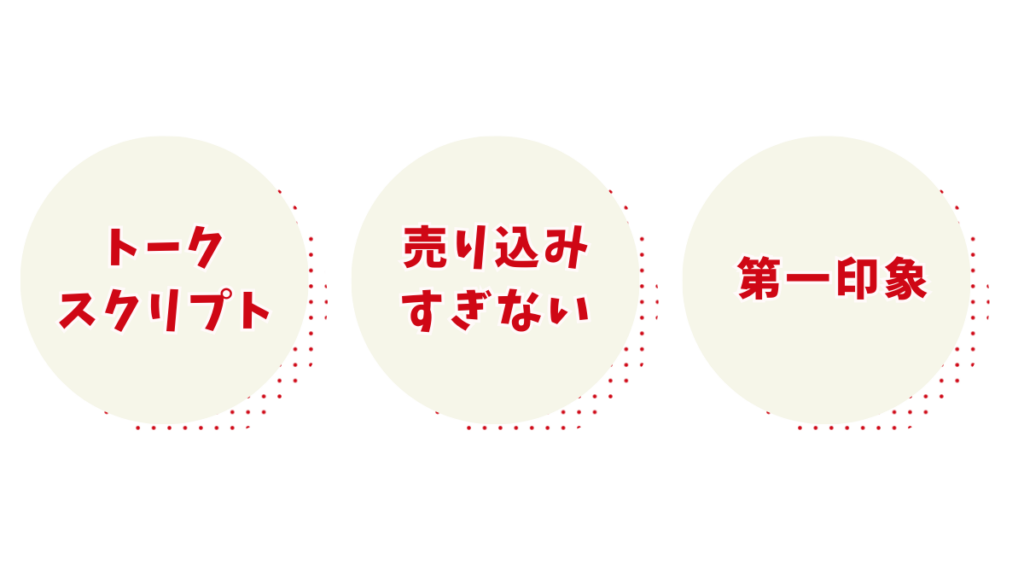 そのためトークスクリプトの内容を反射で実践できるように、ロープレの場を設けましょう。詳しくトークスクリプトについて知りたい方は、成果を上げるためのトークスクリプトの作り方について解説した記事をご確認ください。
