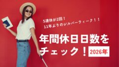 ▼国民の祝日・振替休日など年間休日日数については以下の記事でもまとめています