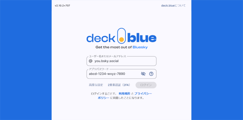 サードパーティーアプリなどを使う際は、Blueskyのログインパスワードではなく、アプリパスワードを作成してログインします。