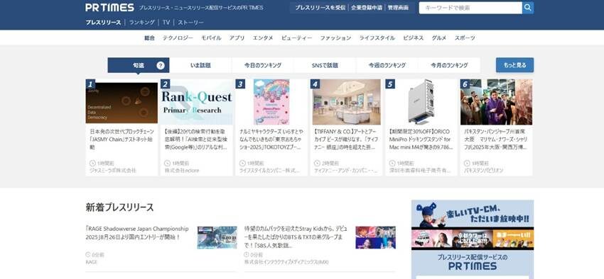 PR TIMESとは利用企業数10万社超え、累計200万件超えでシェアNo.1のプレスリリース配信サービスです。