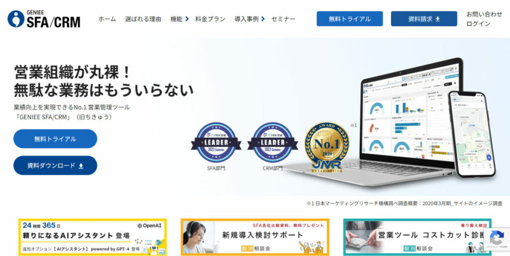 GENIEE SFA/CRM(旧:ちきゅう)は使いやすさにこだわったクラウド顧客管理システムです。