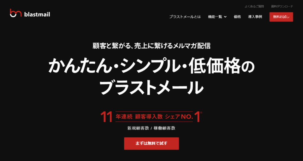 株式会社ラスクライトクラウドのブラストメールは、11年連続で顧客導入数シェア1位のメル配信システムです。