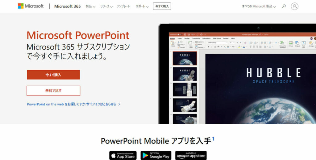 参考:https://www.microsoft.com/ja-jp/microsoft-365/powerpoint