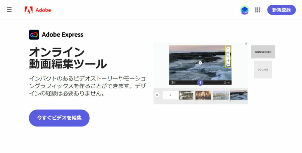 Adobe Express(アドビエクスプレス)も無料で使えるクラウドデザインアプリです。Canvaと同じように直感的な操作が魅力で、音楽素材も多いという特徴があります。