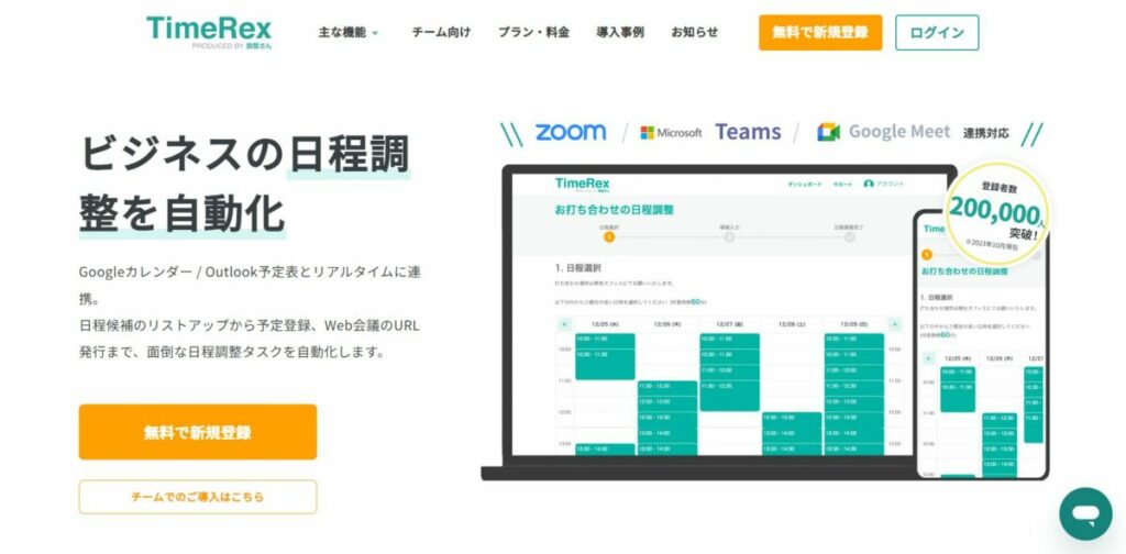 | 連携ツール | Google カレンダー Outlook カレンダー Google Meet Microsoft Teams Zoom Slack |