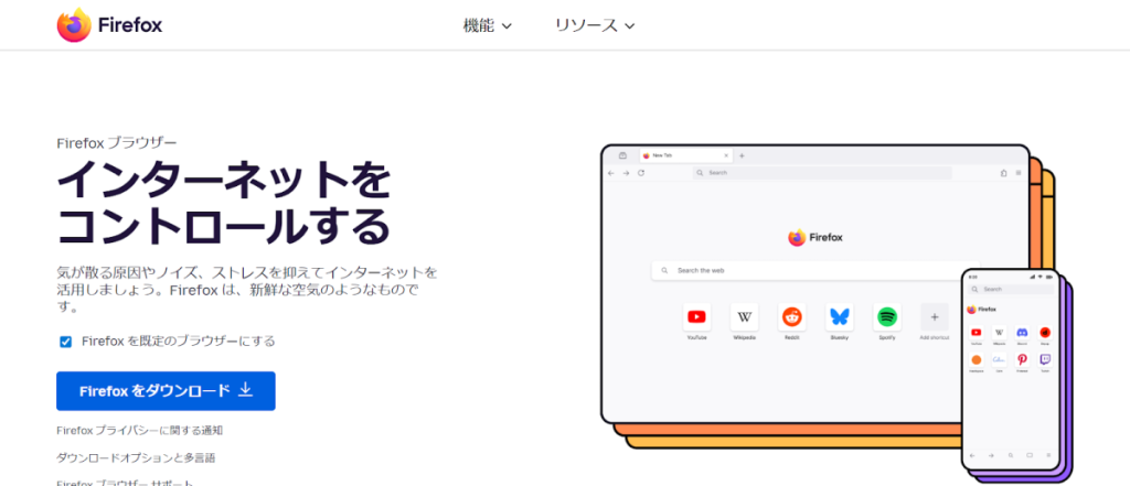 Firefoxは、Mozillaがオープンソースで開発を続けているWebブラウザです。動作の軽さと速さに定評があります。主な特長は次のとおりです。