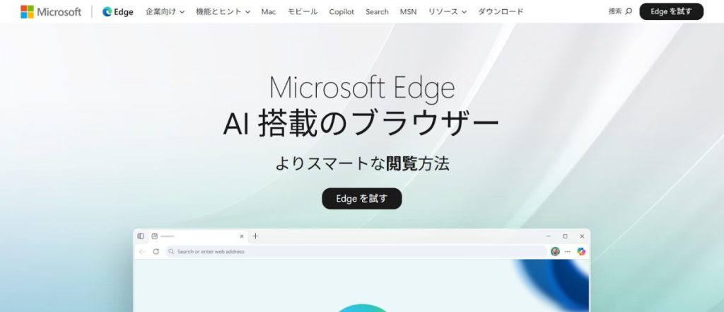 Microsoft Edgeは、Windowsに標準搭載されているWebブラウザです。macOS・iOS・Androidでも利用でき、複数のデバイスでシームレスに作業できます。Microsoft Edgeの特長は次のとおりです。