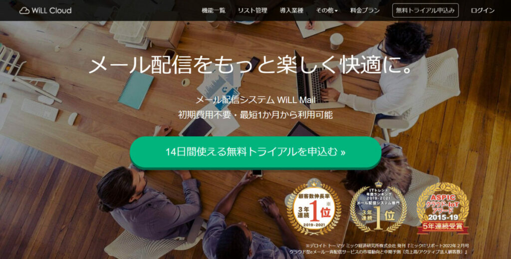 30種類以上の機能が搭載されており、ツールの使い方のサポートも手厚い。メールマーケティングを行うための幅広いニーズに対応しています。