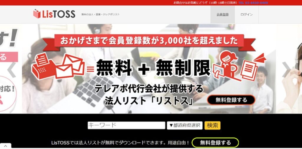 LisTOSS(リストス)は無料かつ無制限で営業リストがダウンロードできるツールです。できるだけたくさんの企業にアプローチしたい場合におすすめです。
