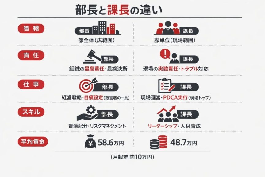 部長と課長の仕事内容(役割)の違いは何ですか?