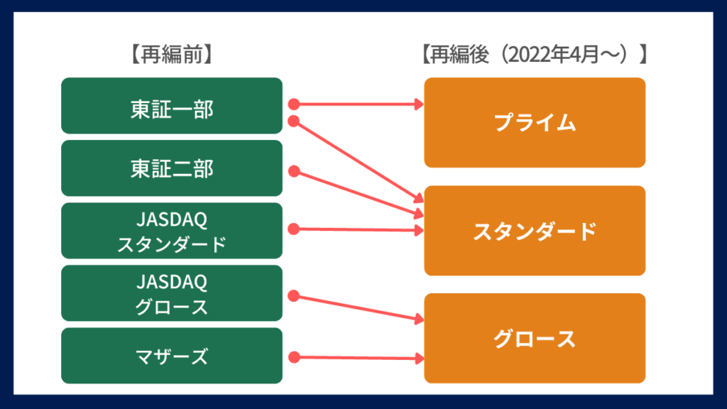 - プライム市場:グローバル投資家向け、最も厳しい上場基準を課すトップ市場