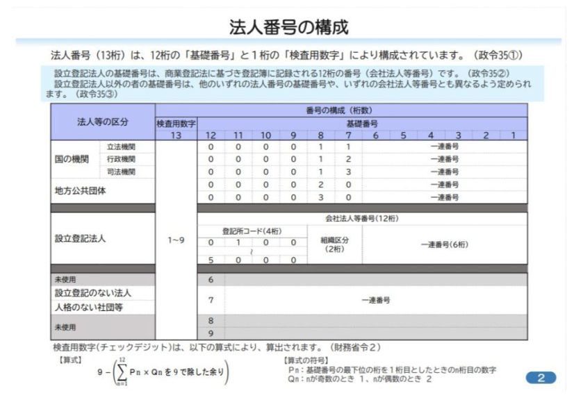 - 構成: 「1桁の検査用数字(チェックデジット)」+「12桁の会社法人等番号」