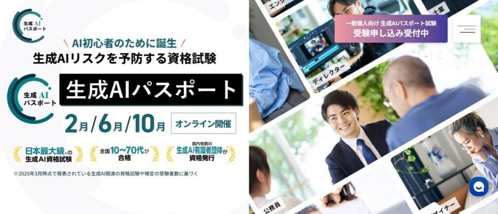 生成AIパスポートとは、AIに関する基礎知識を保有していることを認定する試験です。一般社団法人生成AI活用普及協会が開催しています。