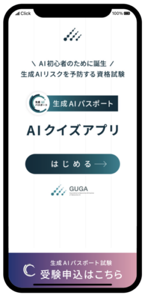 生成AIパスポート試験で緊張しないためにも、GUGAのLINE公式アカウント「生成AI パスポート AIクイズ アプリ」で問題を沢山解いておきましょう。GUGAのLINE公式アカウントを友だち追加すれば、クイズアプリが利用できます。
