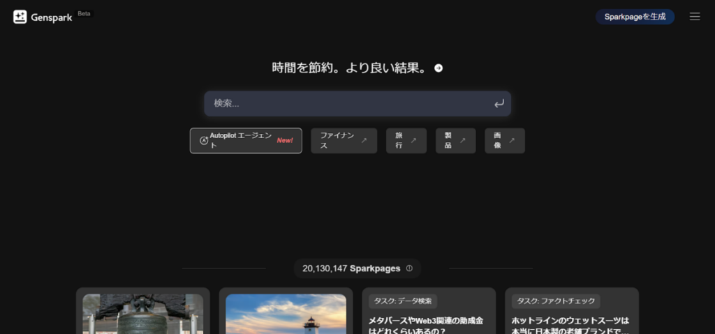 AIがリアルタイムで情報を統合し、「Sparkpage(スパークページ)」として提供することで、より正確で関連性の高い情報を即座に得られるのが特徴です。