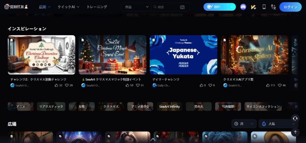 SeaArt(シーアート)はシンプルなインターフェースで、ユーザーが入力したプロンプトに基づいて画像を生成します。特にアートスタイルの画像生成に強みがあります。