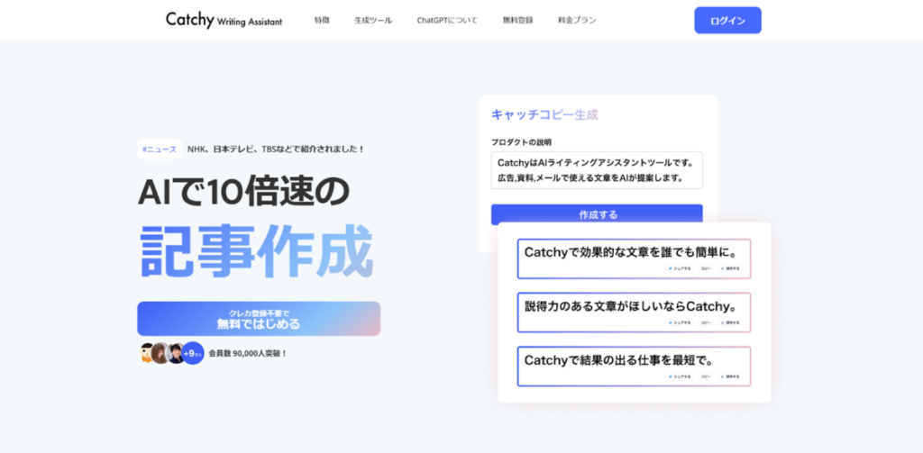 Catchy(キャッチ―)は、特にキャッチコピーや短い文章を生成するのに特化したAIツールです。