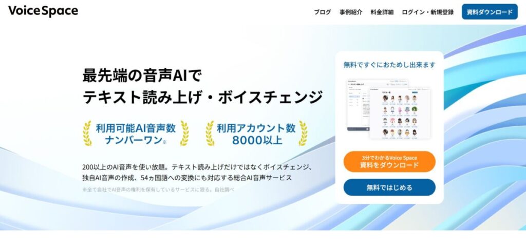 ウェブサイトのテキストやWord、PDFファイルを読み上げてくれるサービスです。日本語に特化しており、自然で聞きやすい発音が特徴です。ブラウザ上で動作するため、ソフトのインストールは不要です。