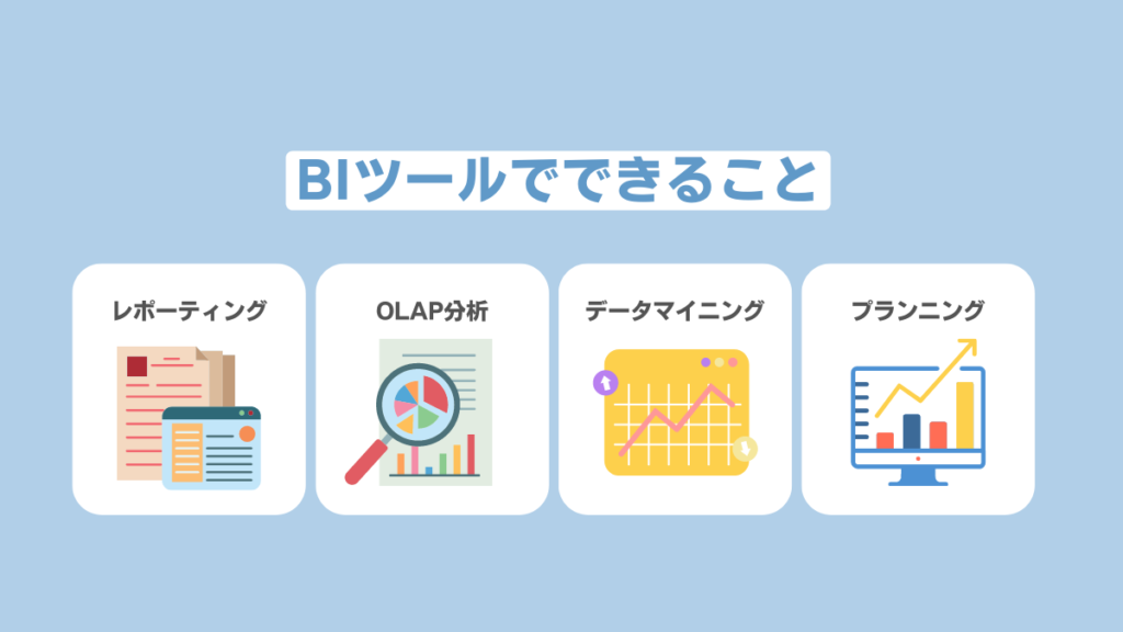BIツールの役割・目的について理解を深めるために、BIツールでできることを解説します。