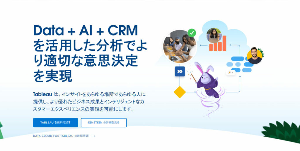 Tableau(タブロー)はSalesforce社が運営するBIツールで、以下の3つの特徴があります。