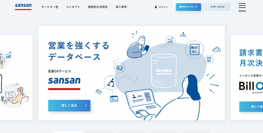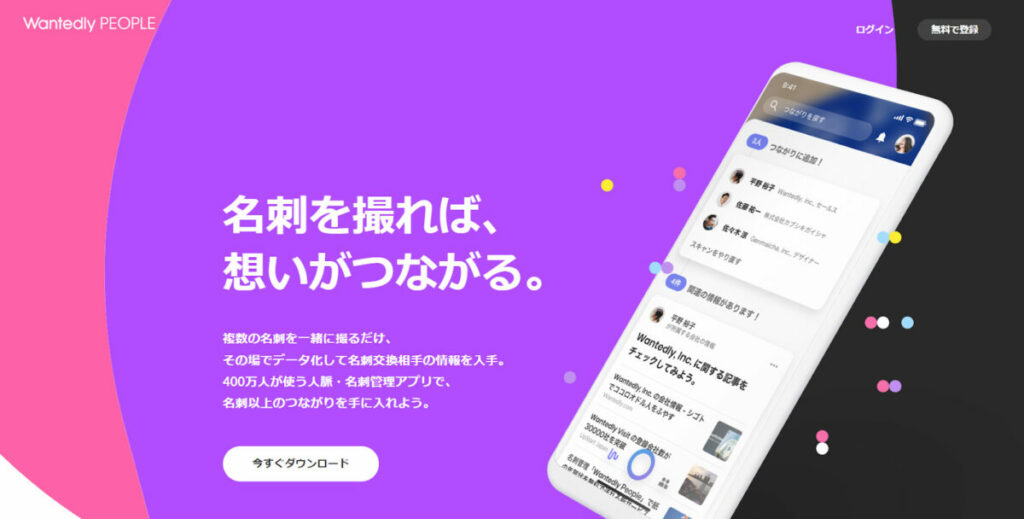 Sansanは法人向けに特化した名刺管理アプリです。基本的に有料となりますが、無料トライアルでオンライン名刺機能や名刺のデータ化などを試用できます。