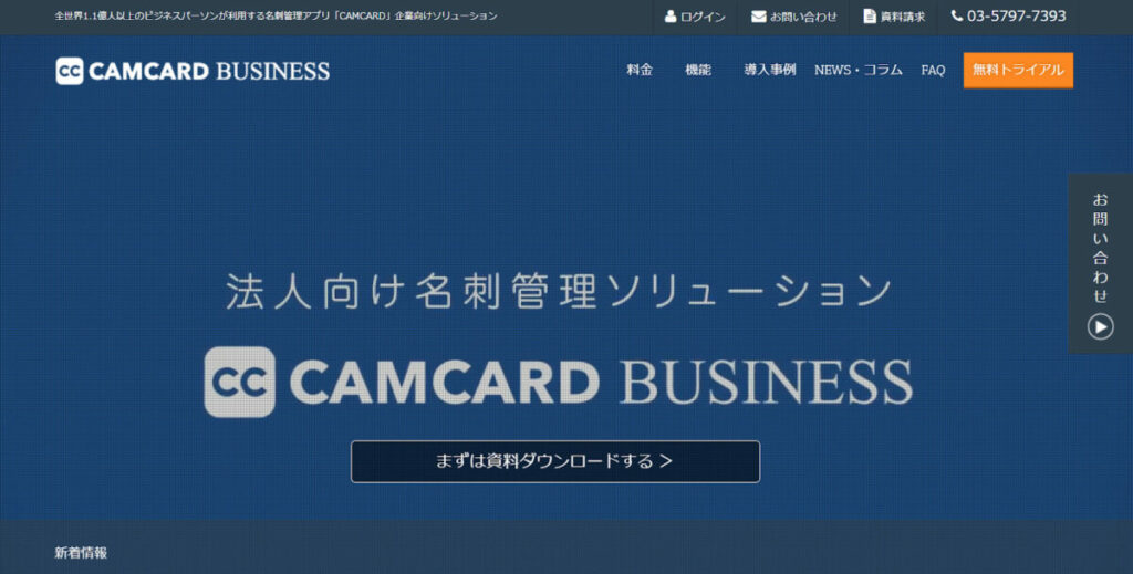 CAMCARDは10日間無料で試用できる名刺管理アプリです。個人用・法人用のサービスがあり、法人用は月額1,700円から利用できます。