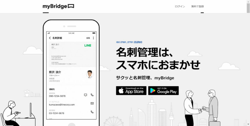 myBridgeはすべての機能を無料で使える名刺管理アプリです。登録できる名刺の数は無制限で、社内で共有できる名刺帳の作成もできます。