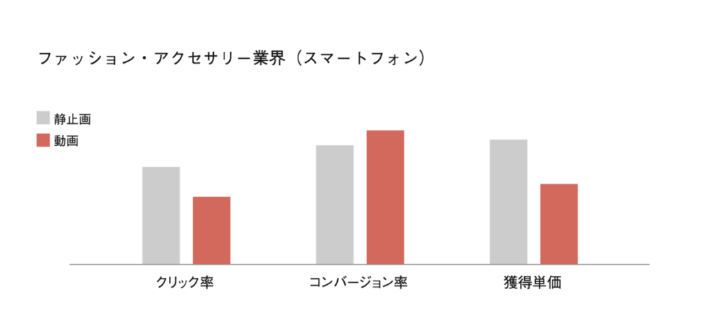 そのため、静止画よりも動画のほうがユーザーの理解度や購買意向を高め、コンバージョン率・CVRを引き上げることが期待できるということです。また、結果として獲得単価の引き下げにも繋がっています。