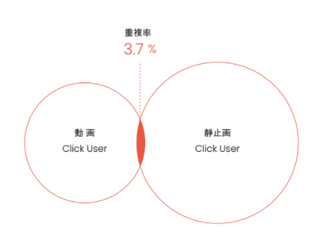 旅行・交通業界某社がYDA(Yahoo!ディスプレイ広告)に広告配信した事例によると、同条件で配信した動画クリックユーザーと静止画クリックユーザーのうち、重複しているユーザーは全体のわずか3.7%ほどだったということです。
