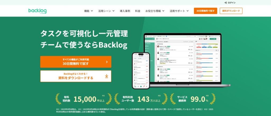 プロジェクト管理と工数管理をセットで行える定番ツールです。