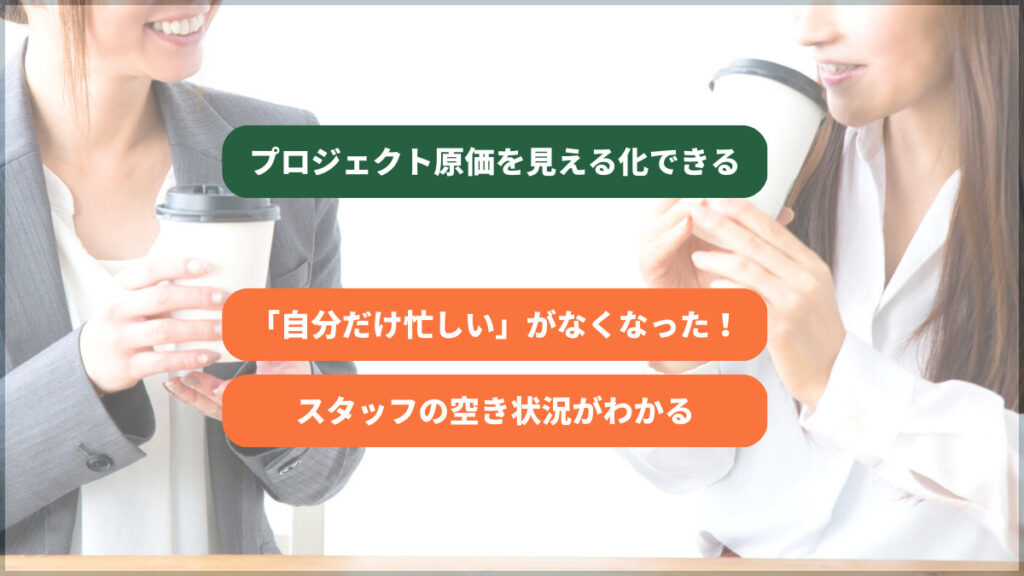 また、従業員それぞれのリソースを把握できるので、一人にタスクが集中してオーバーワークになることを防げます。人的なリソースの空き状況も可視化できるので、組織全体の生産性を上げることも可能です。