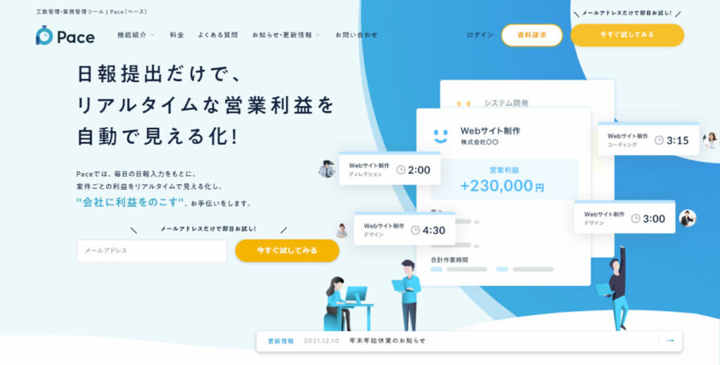 Pace(ペース)は、日報から工数を算出するのが特徴です。