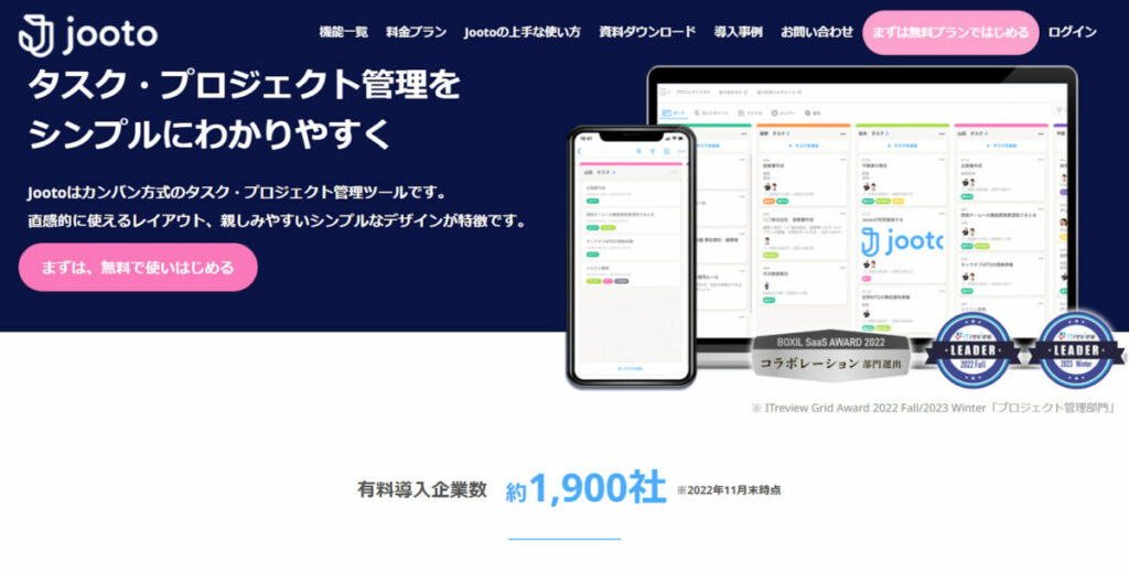 Jooto(ジョートー)はドラッグ&ドロップだけで簡単に使えるプロジェクト管理ツールです。
