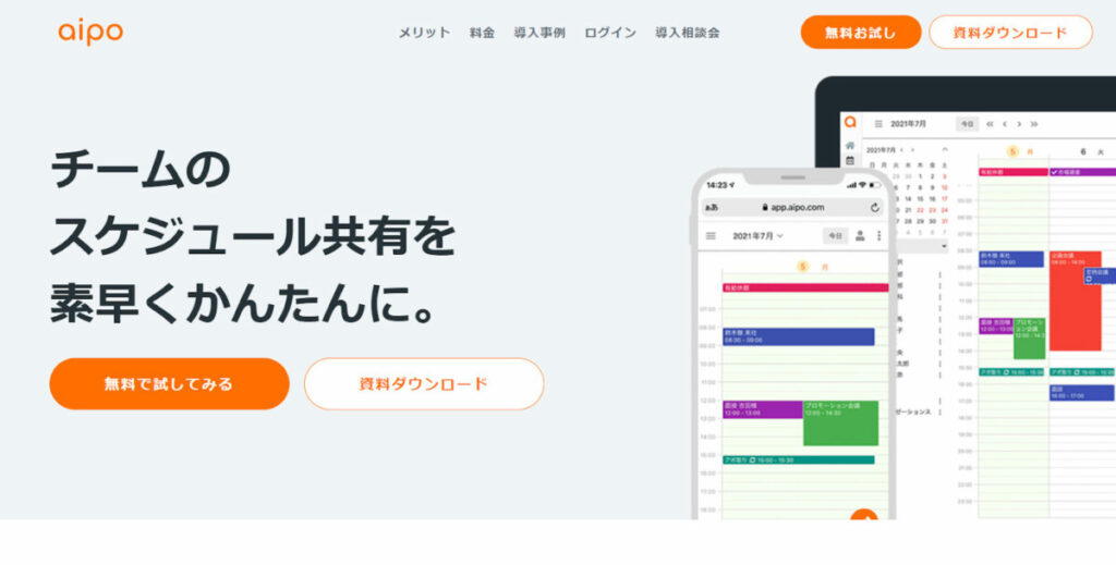 Aipo(アイポ)はチーム管理に特化しているサービスです。チーム全体のスケジュールをひとつのカレンダーで表示できるため、PC操作が苦手でも管理しやすいというメリットがあります。